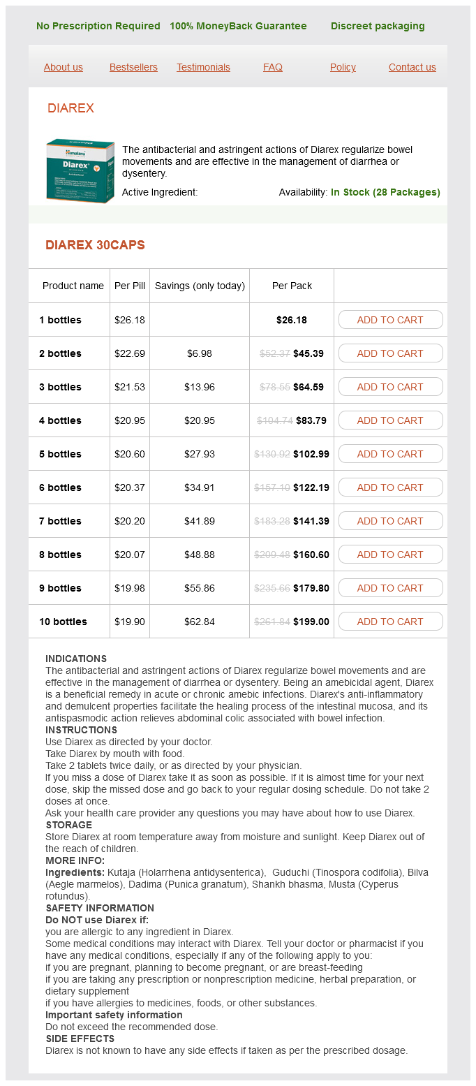 Diarex dosages: 30 caps
