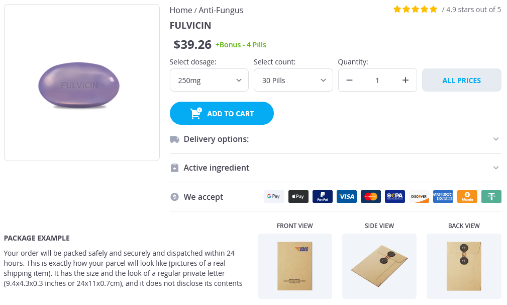 - Fulvicin 250mg × 30 Pills - $39.26