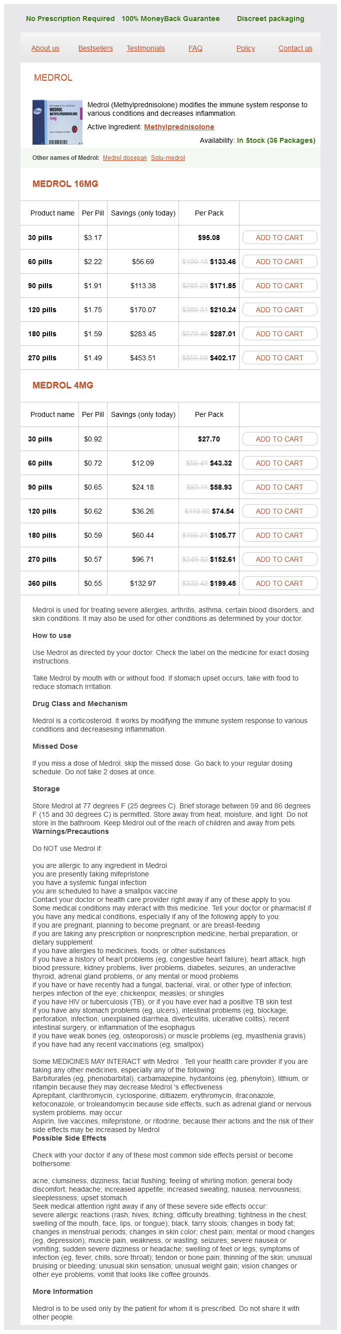 Medrol dosages: 16 mg, 4 mg