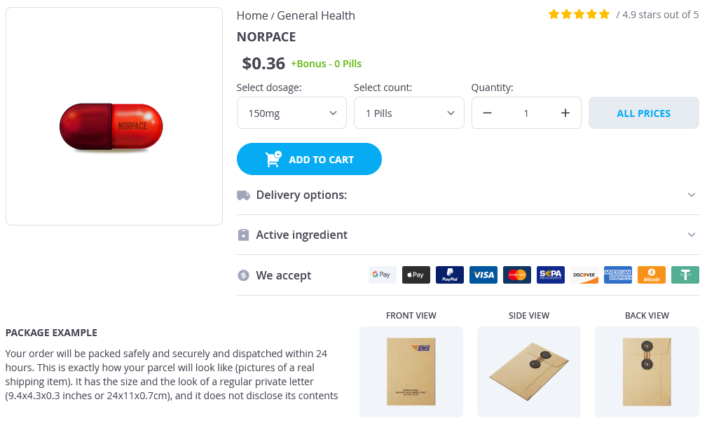 - Norpace 150mg × 1 Pills - $0.36