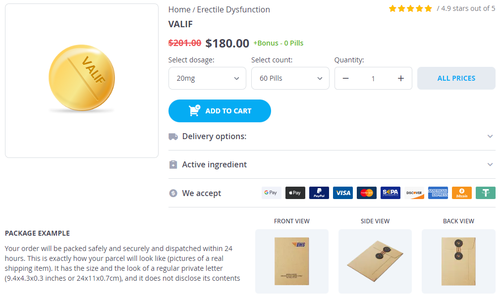 - Valif 20mg × 60 Pills - $180.00