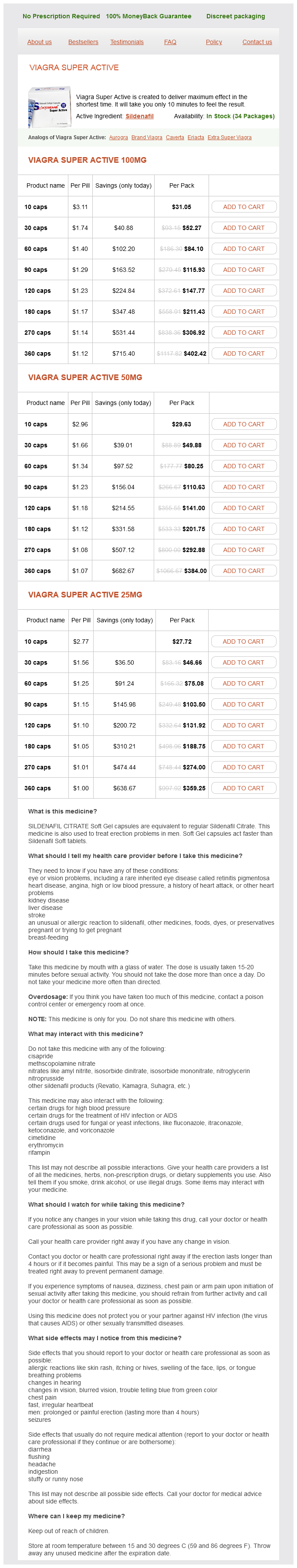 Viagra Super Active packs: 10 caps, 30 caps, 60 caps, 90 caps, 120 caps, 180 caps, 270 caps, 360 caps
